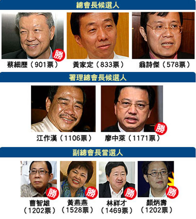 至于引起10角大混戰(zhàn)的副總會長職,隸屬蔡細歷派,尋求蟬聯(lián)的黃燕燕此次以高票成功捍衛(wèi)原職,也是最高票副總會長。而選前被視為“左右縫源”的前副總會長林祥才則位居第二,黃家定派的曹智雄及翁詩杰派的顏炳壽則同樣雙雙擠入副總會長行列,而顏炳壽的入圍更被視為是“黑馬”。