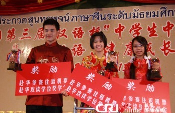 正值慶祝中泰建交35周年之際,泰國(guó)第三屆“漢語(yǔ)橋”中學(xué)生中文比賽13日在曼谷精彩舉行。泰國(guó)中學(xué)生出色的漢語(yǔ)水平彰顯泰國(guó)漢語(yǔ)教學(xué)的蓬勃朝氣,也將推動(dòng)中泰友誼深入發(fā)展。