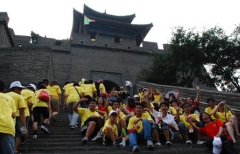 營員中的絕大多數(shù)是第一次到中國,長城在他們的腦海里只是關(guān)于“世界第八大奇跡”的想象,有機會親自攀登,大家的心情非常激動。車行至居庸關(guān)景區(qū),翠峰重迭,風光旖旎,長城蜿蜒如龍盤踞在崇山峻嶺之間,營員們按捺不住激動的心情,不禁歡呼起來。