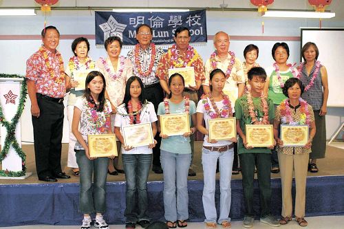 中新網(wǎng)9月21日電 據(jù)美國《星島日?qǐng)?bào)》報(bào)道,美國夏威夷明倫學(xué)校近日召開頒獎(jiǎng)大會(huì),褒揚(yáng)在第10屆世界華人學(xué)生作文大賽中獲獎(jiǎng)的師生。5位學(xué)生和4位教師高興地從學(xué)校董事長(zhǎng)方惠思手中接過由大賽組委會(huì)從中國寄來的得獎(jiǎng)證書,全校師生也分享了他們的光榮。
