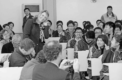 昨天(8日)上午9點(diǎn),杭州學(xué)軍中學(xué)的英語(yǔ)課堂上,出現(xiàn)了一群洋面孔——美國(guó)中小學(xué)校長(zhǎng)代表團(tuán)正坐在教室里旁聽(tīng)?赡芤?yàn)轭^一次聽(tīng)中國(guó)老師上英語(yǔ)課,美國(guó)校長(zhǎng)們都有點(diǎn)興奮,有幾位校長(zhǎng)甚至自告奮勇代替學(xué)生回答老師的提問(wèn),引得課堂上掌聲笑聲不斷。這是記者見(jiàn)過(guò)的氣氛最輕松的一堂對(duì)外公開(kāi)課。