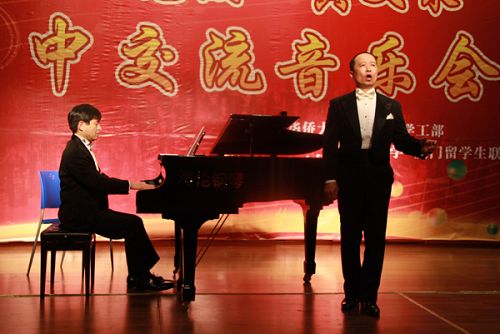 中新網(wǎng)3月12日電 據(jù)華僑大學(xué)網(wǎng)站消息,隨著深情而婉轉(zhuǎn)的鋼琴曲《愛之夢》響起,11日晚,由華僑大學(xué)宣傳部、學(xué)工部、音樂舞蹈學(xué)院主辦,日本國立宮崎大學(xué)、廈門留學(xué)生聯(lián)誼會協(xié)辦的慶祝華僑大學(xué)建50周年“華園藝苑”之日中交流音樂會在該校的明德堂拉開帷幕。日本著名鋼琴演奏家、日本國立宮崎大學(xué)教授葛西寬俊與閩籍男高音歌唱家黃文泉聯(lián)手引領(lǐng)華園師生走進迷人的音樂世界。