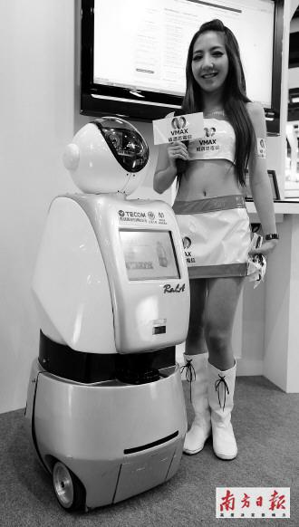 昨日,在臺北國際電腦展上,工作人員展示臺灣一家廠商生產(chǎn)的居家看護(hù)機(jī)器人(見圖)。這款機(jī)器人可通過互聯(lián)網(wǎng),將在家獨(dú)居老人的生活狀況傳遞給家屬。