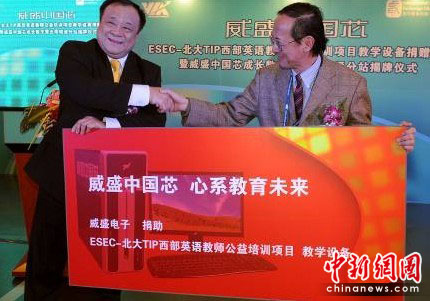 “感謝威盛對TIP給予的關(guān)注與支持。四年來,威盛對TIP計算機室的持續(xù)支持已充分說明,北京大學(xué)、美中教育機構(gòu)與威盛為推動西部教育發(fā)展的信心!北贝髾C關(guān)黨委書記李國斌在致辭中說,“威盛多年來一直關(guān)注中國教育事業(yè)的發(fā)展,致力于推進教育信息化普及,自2006年起,威盛先后為支持TIP設(shè)立計算機語音實驗室捐贈了電腦設(shè)備,使參訓(xùn)學(xué)員能使用TIP語音糾正軟件糾正發(fā)音。我們非常感謝威盛對西部英語教師發(fā)展的幫助!