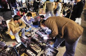這個(gè)天光墟就在荔灣加油站后面的一塊空地,空地中央搭了些小型帳篷,每個(gè)帳篷就是一個(gè)攤位,這些帳篷周邊圍著更多的地?cái)偂_@里所賣(mài)的絕大多數(shù)是手表、手機(jī)、CD機(jī)、電路板,甚至顯微鏡、馬達(dá)等各式電子舊貨。