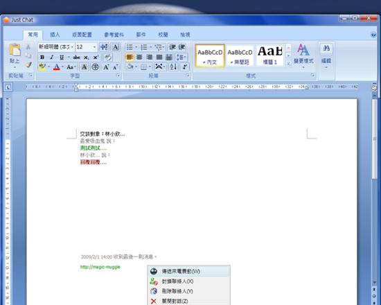 據(jù)介紹,Just Chat的原理十分簡單,只是把MSN嵌入外觀像Word、execl這些文書編輯等辦公