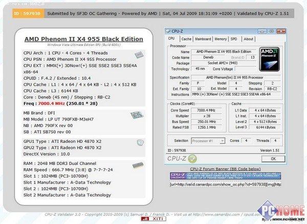 本周,由AMD特別提供的極品特供處理器Phenom II 42 TWKR在開啟四顆核心的情況下,成功沖擊了7GHz大關(guān),創(chuàng)造了4核心處理器的最新世界記錄(默認頻率:2.0GHz,超頻幅度達到250%)。