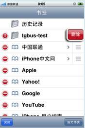 ⑵ 在書簽列表界面中,點(diǎn)擊屏幕左下角的“編輯”按鈕可刪除已經(jīng)保存的書簽,具體操作為:點(diǎn)擊紅色的“-”,使其變?yōu)椤皘”,直接點(diǎn)擊“刪除”按鈕即可刪除對應(yīng)的書簽
