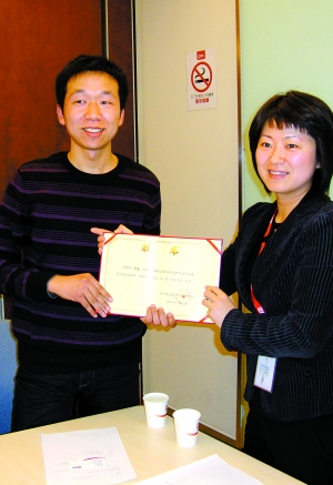 “熊貓燒香”作者李俊(左)接過金山“民間安全觀察員”的聘書。據(jù)《長江商報》