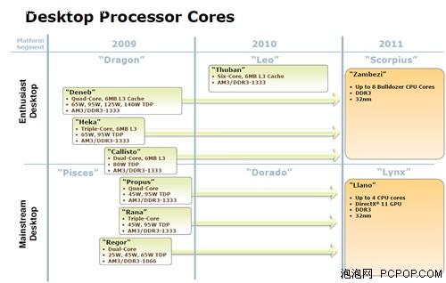 785G和880G搭配的是Propus核心(四核)、Rana核心(三核)以及Regor核心(雙核)的速龍II處理器,而890GX所搭配的是Deneb核心(四核)、Heka核心(三核)以及Thuban核心(六核)的弈龍II處理器。