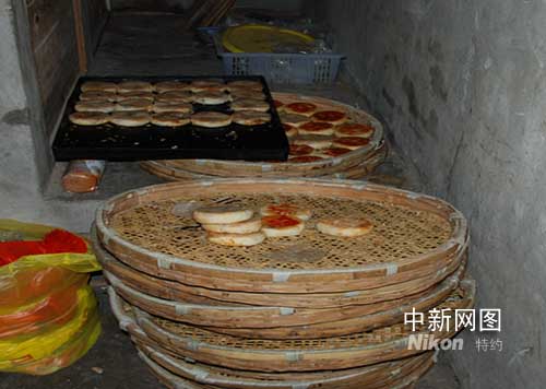 當(dāng)天下午,根據(jù)舉報(bào)線索,工商執(zhí)法人員在椒江三甲街道的樓里村一處二層高的樓房里發(fā)現(xiàn)這個(gè)“黑月餅”加工點(diǎn)!白哌M(jìn)樓房的里屋,各種不同的月餅餡堆放成一地,周圍蒼蠅四處橫飛,空氣也十分污濁。我們進(jìn)去的時(shí)候還有一位光著膀子的老漢正在桌子上赤手和著月餅餡,桌子的另一邊有一個(gè)烤月餅的爐子,剛烤好的月餅堆放在一邊。衛(wèi)生狀況很不好!眻(zhí)法人員告訴記者,檢查中在樓道底層還發(fā)現(xiàn)了一些加工的用的面粉和一個(gè)攪拌機(jī),幾桶十分骯臟的食用油堆放在一邊,環(huán)境臟亂不堪。