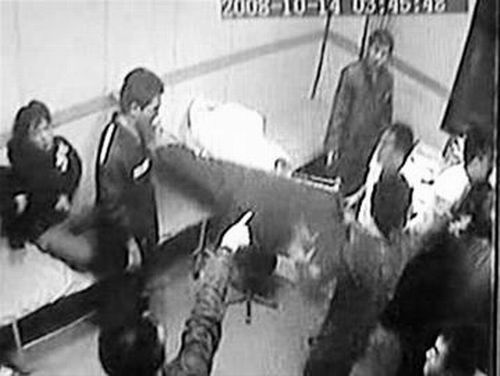 穿白衣男子沖了進來向醫(yī)生揮起拳頭