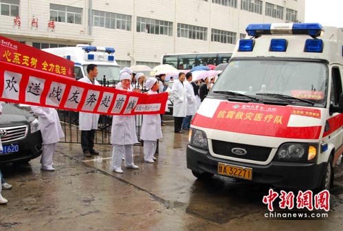 中新網(wǎng)蘭州4月21日電 (記者 張玉璽)4月21日,根據(jù)衛(wèi)生部安排,由蘭州大學(xué)第一醫(yī)院19名專業(yè)人員組建的甘肅省第4支赴青海玉樹災(zāi)區(qū)醫(yī)療救援隊(duì)自蘭州出發(fā)。這支醫(yī)療救援隊(duì)將接替甘肅省中醫(yī)院醫(yī)療隊(duì),承擔(dān)甘肅省醫(yī)療對口支援的玉樹縣哈秀鄉(xiāng)醫(yī)療服務(wù)工作。