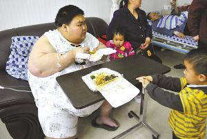 經(jīng)過新橋醫(yī)院連日來的精心治療,備受市民關(guān)注的“亞洲第一胖”梁用的病情趨于穩(wěn)定,昨日已能下地活動(dòng),且胃口大開,將三四兩米飯一掃而光。專家稱,因梁用太胖,無法接受詳細(xì)醫(yī)學(xué)檢查,專家們只得憑經(jīng)驗(yàn)用藥,用藥量是正常人的1.5倍。