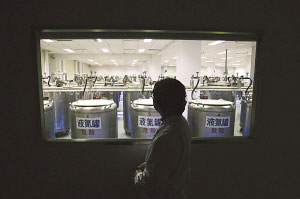 一包從剛剛孕育新生命的臍帶中采集的鮮血,歷經(jīng)數(shù)道“脫菌”門,從外觀評估、稱重到實(shí)驗(yàn)室的病毒、細(xì)菌檢測,再到模擬體內(nèi)環(huán)境觀測造血干細(xì)胞的活力,最后逐漸從室溫降至-196攝氏度放入液氮凍存———昨日,北京和天津兩家臍帶血庫首次向公眾開放。