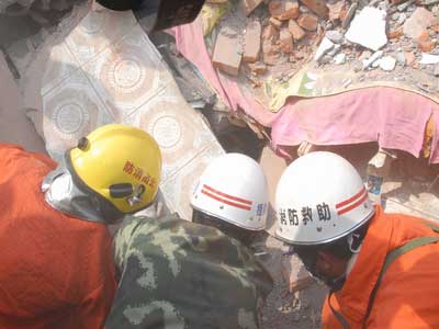 10時25分,消防官兵在對漢旺鎮(zhèn)災(zāi)區(qū)天池礦業(yè)公司家屬樓進行搜索救援時,突然聽到廢墟中傳來一陣微弱的呼救聲。還有幸存者!馬上進行救援!全力挽救幸存者的生命!隨著現(xiàn)場指揮員的一聲令下,參戰(zhàn)消防官兵在指揮員的嚴密組織下科學施救,充分發(fā)揮消防部隊的裝備優(yōu)勢和救援經(jīng)驗,迅速使用液壓剪、切割機迅速清除幸存者上方的鋼筋、鐵條等物,搬除身上埋壓的石板、水泥塊,為幸存者開辟救生通道。