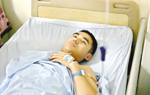 昨日下午,記者在醫(yī)院目睹了薛梟經(jīng)受的系列治療,過程很痛楚,但他很能忍耐。面對來訪者關(guān)心的詢問,他笑著回答:“沒事!睂嶋H上他右臂截肢后傷口一直很痛,夜里很難安眠。薛梟被埋時耳朵進(jìn)了沙石,這些沙石要掏出來為防以后失聰。掏耳朵時疼極了,還出了血,需要等結(jié)疤后再次掏。他的右腿肌肉因為受壓,昨天開始理療。此外他的肺部在被埋時吸入異物,導(dǎo)致他咳嗽不斷。母親譚忠燕又痛心又自豪地說:“這孩子很能吃苦,我相信他一定能挺過去。”