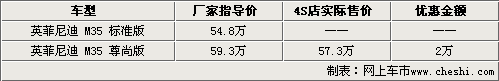 英菲尼迪作為日產(chǎn)的高端品牌,在中國(guó)共計(jì)銷(xiāo)售4款車(chē)型,SUV車(chē)型FX和EX,轎車(chē)M和G。近日我們從英菲尼迪官方獲悉到,英菲尼迪的高端豪華轎車(chē)M35,將在即將開(kāi)幕的上海車(chē)展上推出09款車(chē)型。與此同時(shí)我們從英菲尼迪4S店獲悉到全新09款M35的發(fā)動(dòng)機(jī)將被重新調(diào)校,在動(dòng)力方面較老款車(chē)型有所提升,同時(shí)變速箱將會(huì)改為7速手自一體變速箱,進(jìn)一步提升了該車(chē)的駕駛樂(lè)趣,老款車(chē)型為5速手自一體變速箱。4S店還透露09款M35的售價(jià),高配車(chē)型為60.3萬(wàn)元。