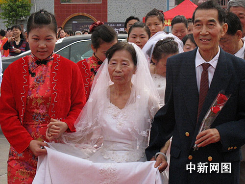 本次活動以“弘揚(yáng)健康養(yǎng)生文化,打造歡樂共享、展示中老年風(fēng)采”為主題。開幕式上,在現(xiàn)場的幾千名觀眾的共同見證下,來自不同地區(qū)的六對金婚、銀婚中老年夫婦代表牽手走上紅地毯,舉辦了隆重的婚慶盛典。