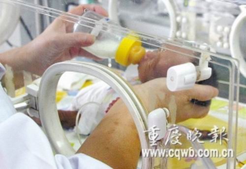 醫(yī)生說,入院后的前幾天,強強3次出現(xiàn)呼吸困難,好在都化險為夷。醫(yī)生介紹,強強一開始不能像其他孩子一樣正常吃奶,只能通過靜脈給孩子補充營養(yǎng),隨后,護(hù)士們就用最小號的奶嘴給孩子喂奶,從最初的每次0.5毫升、0.8毫升到今天的7、8毫升,強強現(xiàn)在已能自己用嘴吸奶了,腸胃系統(tǒng)已完全適應(yīng)外來營養(yǎng)。