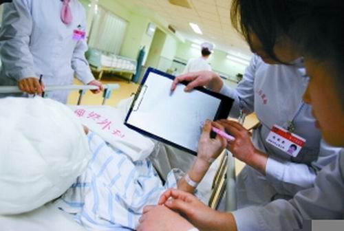 春節(jié)期間,值班護(hù)士有空就為其朗讀文章,誘導(dǎo)趙某開口說話,并在病歷卡上寫上0至9個(gè)數(shù)字,讓他把家里的電話號(hào)碼給圈出來。