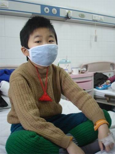 昨日下午3時,記者進入軒軒的病房,見有人來,軒軒勉強地從病床上支撐著坐了起來,一副口罩掛在孩子稚嫩的臉上,將整個面部遮擋了大半部分,只是一雙雖受病痛折磨依然眼光堅毅的眼睛露在了外面。萬玲告訴記者,這是因為怕細菌感染引起更糟糕的結(jié)果,所以遵醫(yī)囑戴起來的,每天只可以摘下一小會。小宇軒看到記者并沒有顯出害怕,但是虛弱的表情已經(jīng)寫在了臉上,孩子的身上開始出現(xiàn)很多的血印。一雙原來白嫩的小手已清晰可見蠟黃色了,手背上則是剛扎完針包著的紗布。