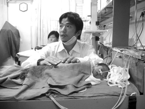 在親戚的幫助下,他將兩個孩子搬回婦科病房。醫(yī)生護士還是勸他說孩子很危險,要趕快放進保溫箱。
