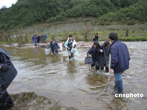 圖為楚雄市派出醫(yī)療隊(duì)淌河,過草地進(jìn)入重災(zāi)區(qū)西舍路鄉(xiāng)。中新社發(fā) 保旭 攝