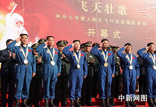 11月9日,以“再現(xiàn)‘神七’飛天全過程 記錄漫步太空經(jīng)典時(shí)刻”為主題的《飛天壯歌——神舟七號(hào)載人航天飛行紀(jì)實(shí)攝影展覽》,九日在北京中國人民革命軍事博物館開幕。