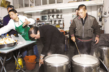 “不是的,施粥與金融危機(jī)沒有關(guān)系。我們施粥不是從今年開始的,從四年前就開始了!敝炖喜(dāng)場就否定了。