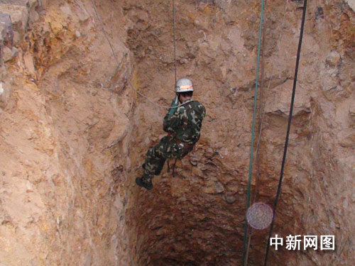 中新網(wǎng)登封1月16日電(記者 朱曉娟 李青娜)2009年1月15日下午16時(shí)28分,河南登封市君召鄉(xiāng)楊溝村一土坡上,四名工人在36米深的井底作業(yè)時(shí),不幸井壁塌方,三人被困機(jī)井中,一人被活埋,情況萬(wàn)分危機(jī),消防官兵冒著零下6度的氣溫,經(jīng)過(guò)將近6個(gè)小時(shí)的努力,終將傷者救出。