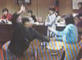 此時無黨籍“立委”羅福助與民進(jìn)黨籍的李文忠恰好同時走向發(fā)言臺,羅福助忽然向李文忠出拳;國民黨的周五六、林明義、陳朝容和無黨籍的蔡豪也加入戰(zhàn)局,現(xiàn)場一片混亂。