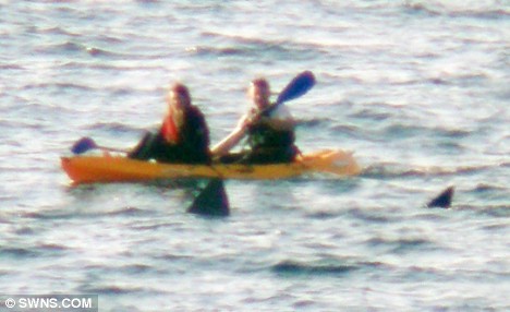 中新網(wǎng)6月4日電 據(jù)英國(guó)媒體報(bào)道,英國(guó)一群游客日前在康沃爾一處海上劃船時(shí),意外遭到數(shù)只巨大鯊魚(yú)包圍,所幸他們保持鎮(zhèn)定,鯊魚(yú)感到?jīng)]有威脅后,默默離他們遠(yuǎn)去。