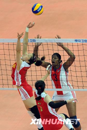 在以0:2落后的絕境下,中國女排的“青年軍”用一場絕地反擊詮釋了女排精神,在5日晚“櫻花衛(wèi)廚杯”2009年中國國際女排精英賽昆山站最后一場比賽中,中國隊以3:2逆轉(zhuǎn)擊敗古巴隊,從而以三戰(zhàn)全勝的戰(zhàn)績獲得本次比賽冠軍。