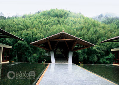 看似粗獷樸素的客家風(fēng)格的夯土,與竹子一道,形成十字水生態(tài)度假村的核心視覺景觀。度假區(qū)內(nèi)幾乎所有的建筑都有著高屋頂、青黃瓦和夯土墻,幾近落地的玻璃窗、超大的露臺、可以看到天空的浴室,所有的設(shè)計都讓住在其間的人們可以隨時與大自然“無縫連接”。令人心儀的是,客房內(nèi)的配套用品也全部采用天然材質(zhì),如純絲和純棉的床上用品,竹子和木質(zhì)材料的家具,擺件也大多是陶土和石器制成的。為了最大程度地提升自然生態(tài)的視覺感受,度假村在別墅院落旁設(shè)置了眾多鏡面水池,水池中休憩著紫色的睡蓮,平整的水面將南昆山綠色的山景完整折現(xiàn),只需要在院落里支一張?zhí)梢,就可?60度完全沉醉在綠涌的林海里。