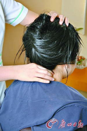 上藥水和上機前進行頸部按摩