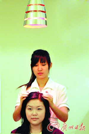 紅外線燈殺菌排毒。紅外線燈能產(chǎn)生熱力使頭蓋保持暖和柔軟,使藥水的治療和營養(yǎng)成分更易吸收,同時能殺菌、減少毒素及有害物資對頭皮、頭發(fā)的損害。在上完藥水后一邊照燈一邊進行頭部按摩,可放松緊繃的頭蓋,使配方更易滲透。