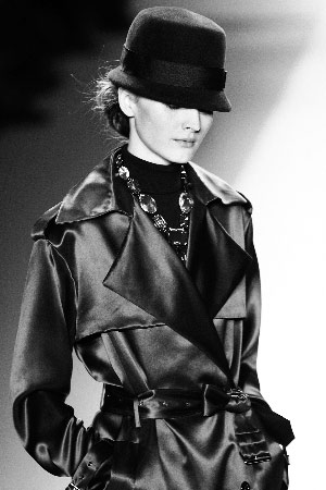 中性風(fēng)格的簡約版淺口禮帽是今冬最熱門之選,很“百搭”,幾乎可以搭配不同風(fēng)格的時(shí)裝。和呢子大衣、小西服等線條硬朗的服裝在一起,帥氣颯爽;和女性風(fēng)格濃郁的雪紡裙、短裙等搭配,刻意拉大的反差也很吸引眼球,最好配上可愛感十足的彩襪,更是有另一番的風(fēng)情。 (巫倩姿)