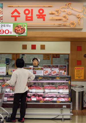 韓國大型超市開始出售美國進(jìn)口牛肉(圖)