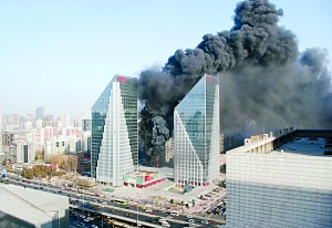 “轟”的一聲,一股黑色濃煙從樓頂騰空而起,“像大樓爆破一樣!币幻繐舻某鲎廛囁緳C(jī)介紹說(shuō),當(dāng)時(shí)他正開(kāi)車經(jīng)過(guò)樂(lè)成國(guó)際購(gòu)物中心,隨著一聲炸響,購(gòu)物中心三樓頂層的設(shè)備間起火,四周的隔板都隨著顫動(dòng),火苗也從擋板縫隙往外躥,“我開(kāi)車到了廣渠門內(nèi),還能看見(jiàn)濃煙!