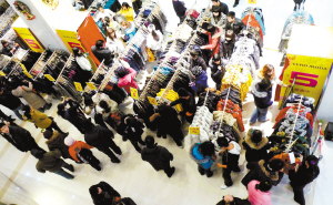 記者了解到,去年元旦北京百貨商場(chǎng)銷售增長(zhǎng)20%多,今年受金融危機(jī)等因素影響增幅有所下降。今年元旦期間,北京商場(chǎng)都加大了折扣促銷力度,服裝普遍在6折以下。記者前日在甘家口商場(chǎng)看到,全場(chǎng)商品都在進(jìn)行滿99減50的活動(dòng),耐克、衣戀等平日里很少打折的品牌專賣店內(nèi),擠滿了消費(fèi)者。耐克專區(qū)的相關(guān)負(fù)責(zé)人告訴記者,“往常只有在折扣店才有對(duì)折的優(yōu)惠,今年是頭一次”。另外,中關(guān)村購(gòu)物廣場(chǎng)等商場(chǎng)的化妝品也參與了商場(chǎng)“滿減”活動(dòng)。