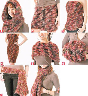 據(jù)英國媒體15日報道,席卷全球的金融危機讓很多愛好時裝的女性被迫減少了逛時裝商場的次數(shù),不過,美國馬薩諸塞州的“魔法圍巾公司”卻為消費者設計出了一條足以應付金融危機的“魔法圍巾”,這條圍巾竟能變成9種不同的服裝道具:它既可以變成頭巾、圍巾、披肩和腰帶穿戴,同時也能充當抹胸背心、無袖女裝和迷你裙。