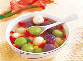 正月十五吃元宵,“元宵”作為食品,在我國也由來已久。宋代,民間即流行一種元宵節(jié)吃 的新奇食品。這種食品,最早叫“ 浮元子”后稱“元宵” ,生意人還美其名曰“元寶” 。元宵即"湯圓"以白糖、玫瑰、芝麻、豆沙、黃桂、核桃仁、果仁、棗泥等為餡,用糯米粉包成圓形,可葷可素,風(fēng)味各異?蓽蟆⒂驼、蒸食,有團(tuán)圓美滿之意。陜西的湯圓不是包的,而是在糯米粉中"滾"成的,或煮司或油炸,熱熱火火,團(tuán)團(tuán)圓圓。