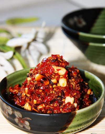 制醬原料:牛肉,花生米,芝麻,金鉤辣椒醬