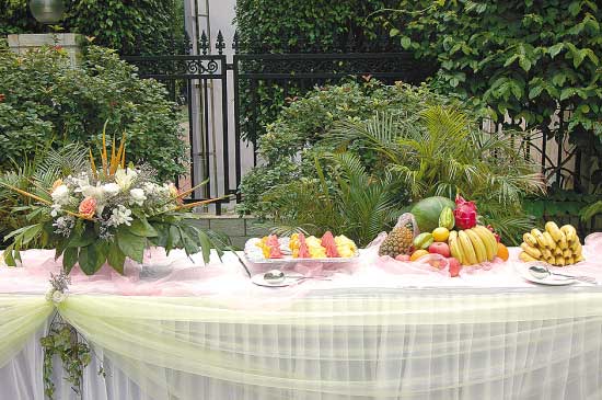 草坪婚禮通常要選擇一片綠地或花園,時間會在午后和晚宴之前。在寸金尺土的廣州城內,可以舉辦草坪婚禮的地方并不多,只有白天鵝賓館、幾家星級酒店和地處二沙島、五羊新城或者珠江新城等擁有綠地較多的西餐廳可以進行。而且,所選的地點要靠近晚上婚宴之所,免除新人奔波之苦。帶花園或綠地的西餐廳或者酒店,都是新人們的首選。