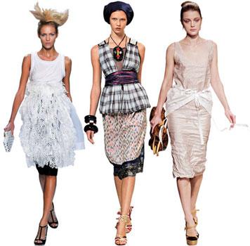 2009春夏,圍裙終于擺脫了“廚房里的必需品”的命運(yùn),有幸站上了時(shí)尚的T臺(tái),想必十分榮耀。它決心雪洗從前油跡斑斑的污濁形象,走出廚房?纯碝arc Jacobs和Prada裙子上的腰部圍裙點(diǎn)綴,是為了凸顯迷人腰部線條,而非烹飪需要。