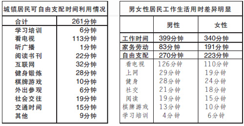 近期美國、日本等9個發(fā)達國家調查數(shù)據(jù)表明,男性平均可以自由支配時間為5小時6分鐘,女性為4小時43分鐘,分別高于北京市居民46分鐘和60分鐘。