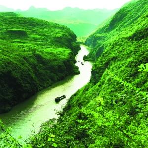 地下河景區(qū)里的云南梯田、微縮長(zhǎng)城、洞中黃果樹(shù)等景點(diǎn)令人嘆為觀(guān)止。撐船在溶洞暗河里穿行,遠(yuǎn)遠(yuǎn)地就聽(tīng)見(jiàn)轟隆隆的水流聲,舉目四望,卻見(jiàn)不到一丁點(diǎn)水花,拐了幾個(gè)彎之后,一簾瀑布傾瀉而下,帶來(lái)意外的驚喜。大自然以其鬼斧神工把中國(guó)自然山水與人文建筑的精華濃縮得惟妙惟肖,然后又以乾坤大挪移的手法把它們都囊括到這個(gè)溶洞之中,其中究竟,怎一個(gè)“奇”字了得?
