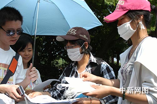 中新網(wǎng)杭州5月4日電(記者 江耘 通訊員 陳國利) “您好,這是我們印制的宣傳冊,介紹了日常生活中預(yù)防甲型H1N1的方法,我們還給您準(zhǔn)備了口罩。如果您覺得需要,就麻煩您戴上它。”今天下午2點(diǎn)多,游客羅先生與夫人正在西湖邊散步,迎面碰上兩位帶著口罩的大學(xué)生。