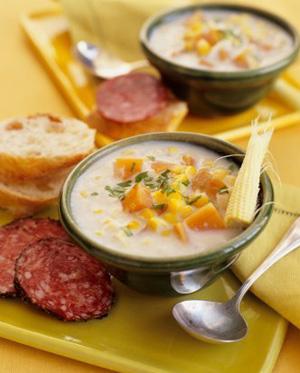 湯類非常有益健康,而且價格低廉、易于制作?墒,罐裝濃湯是由鹽、脂肪、人造添加劑、防腐劑,或許還有一些脫水胡蘿卜調(diào)制成的營養(yǎng)價值非常低的“混合物”。一罐濃湯含1000毫克鈉,大約是你每天所需量的一半。因此,還是自己準(zhǔn)備雞肉、牛骨和蔬菜,親手做一碗熱騰騰、香噴噴的湯吧。